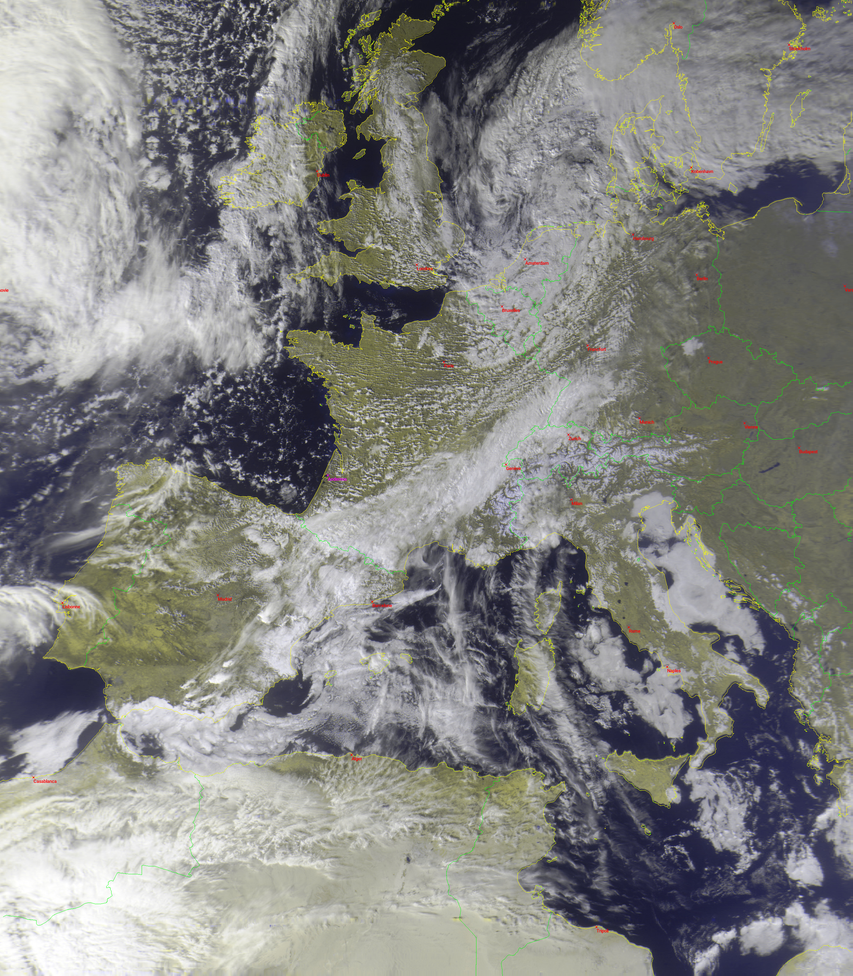 | samedi 27 septembre 2025 vers 14:46 (UTC) | Combinaison visible et ir avec estimation de précipitations |  |